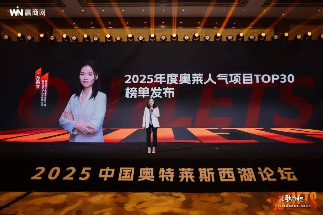 在论坛现场,由赢商奥莱事业部主编、赢商研究中心高级研究员孙莉芸,进行《2025奥莱人气项目榜TOP30》的现场发布。