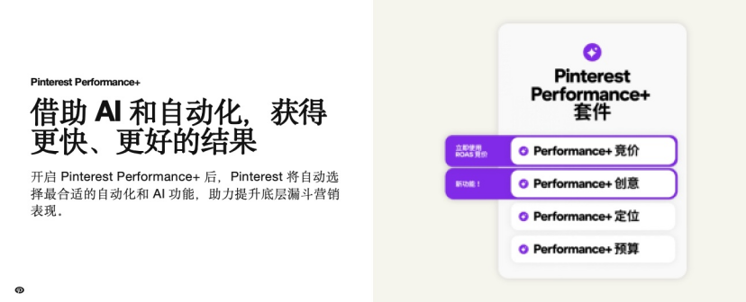 3、提供AI驱动规模化增长解决方案(Pinterest Performance+)