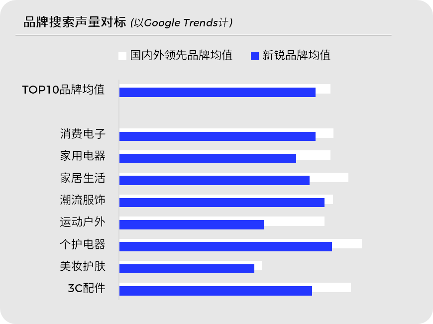 在中国品牌出海过程中,消费电子等规模较大的成熟赛道,品牌心智建设相对更为充分,与全球头部品牌的搜索关注度差距正在缩小。但运动户外、家居生活等领域,不少出海品牌仍面临建立心智的难题。