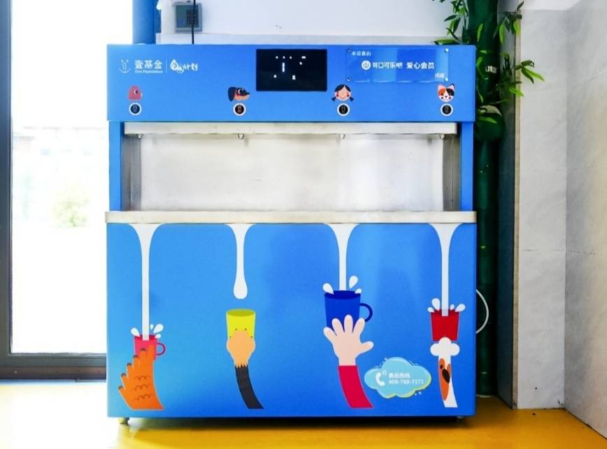 在本次捐赠的15台净水设备中,有一台设备正是多元参与机制下的阶段性成果。这台设备源于“可口可乐吧”小程序“瓶聚点滴、乐在益起”公益活动,由消费者通过捐赠会员积分“快乐瓶”共同促成。