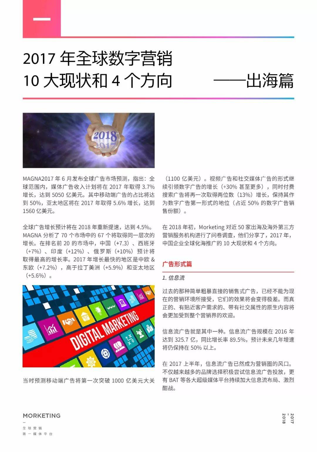 6月29日,Morketing旗下行业研究分析品牌——魔客学院发布了《2017-2018年度数字营销服务机构手册(以下简称数字营销机构手册)。手册内容分为“数字营销行业洞察”和“数字营销服务商简介”两大部分,针对全球数字营销行业发展、数字营销服务商的生存空间、国内“营销技术化”发展现状等多个角度的问题进行了分析和解答。同时手册最后聚合的数十家数字营销服务商信息,也能够帮助行业从业者迅速了解数字营销产业的生态环境,是国内外企业必备的数字营销指南。