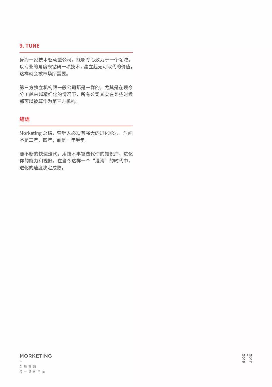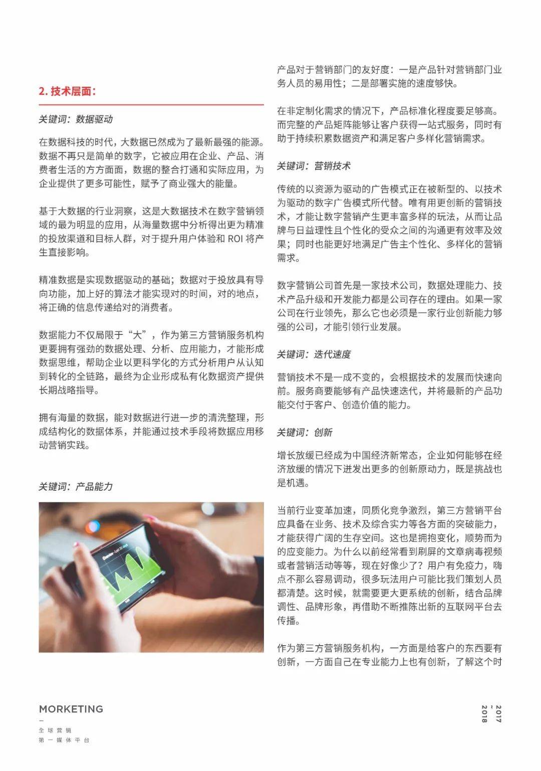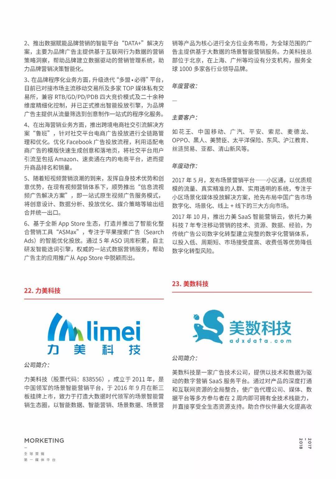如今随着业内对于流量转入“精细化运营”的阶段,数字营销行业也进入了相应的调整期:需要进一步摆脱“粗旷”的增长方式,从新的营销理念、新的营销技术中发现保持业务持续增长的新机会。 在接下来的一段时间内,数字营销行业将持续成为创新高发的领域之一,也是竞争愈加激烈的行业之一。在这个行业背景下,将持续涌现出更多的创新公司,带来更多创新产品和创新服务。