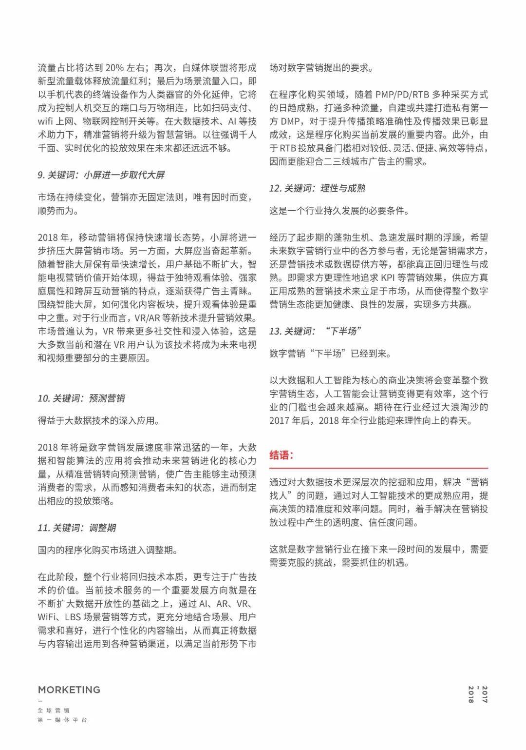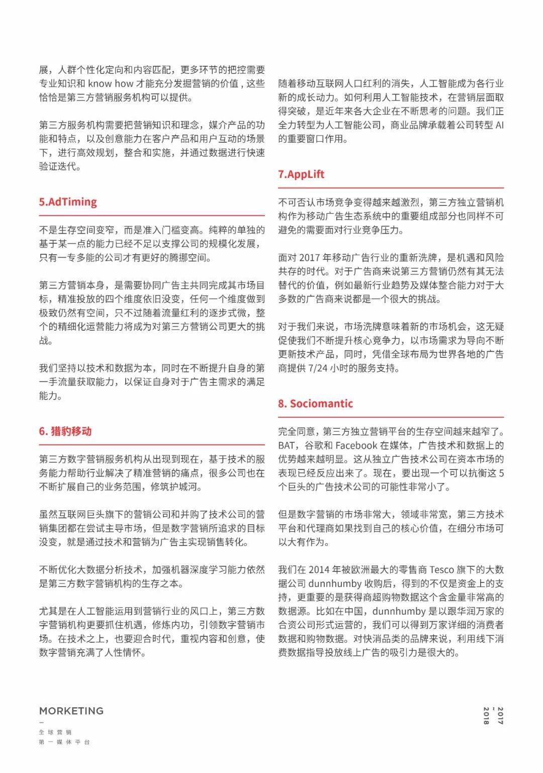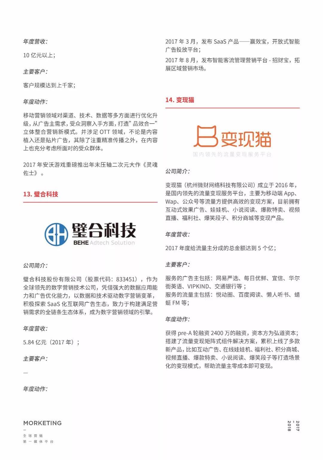 如今随着业内对于流量转入“精细化运营”的阶段,数字营销行业也进入了相应的调整期:需要进一步摆脱“粗旷”的增长方式,从新的营销理念、新的营销技术中发现保持业务持续增长的新机会。 在接下来的一段时间内,数字营销行业将持续成为创新高发的领域之一,也是竞争愈加激烈的行业之一。在这个行业背景下,将持续涌现出更多的创新公司,带来更多创新产品和创新服务。