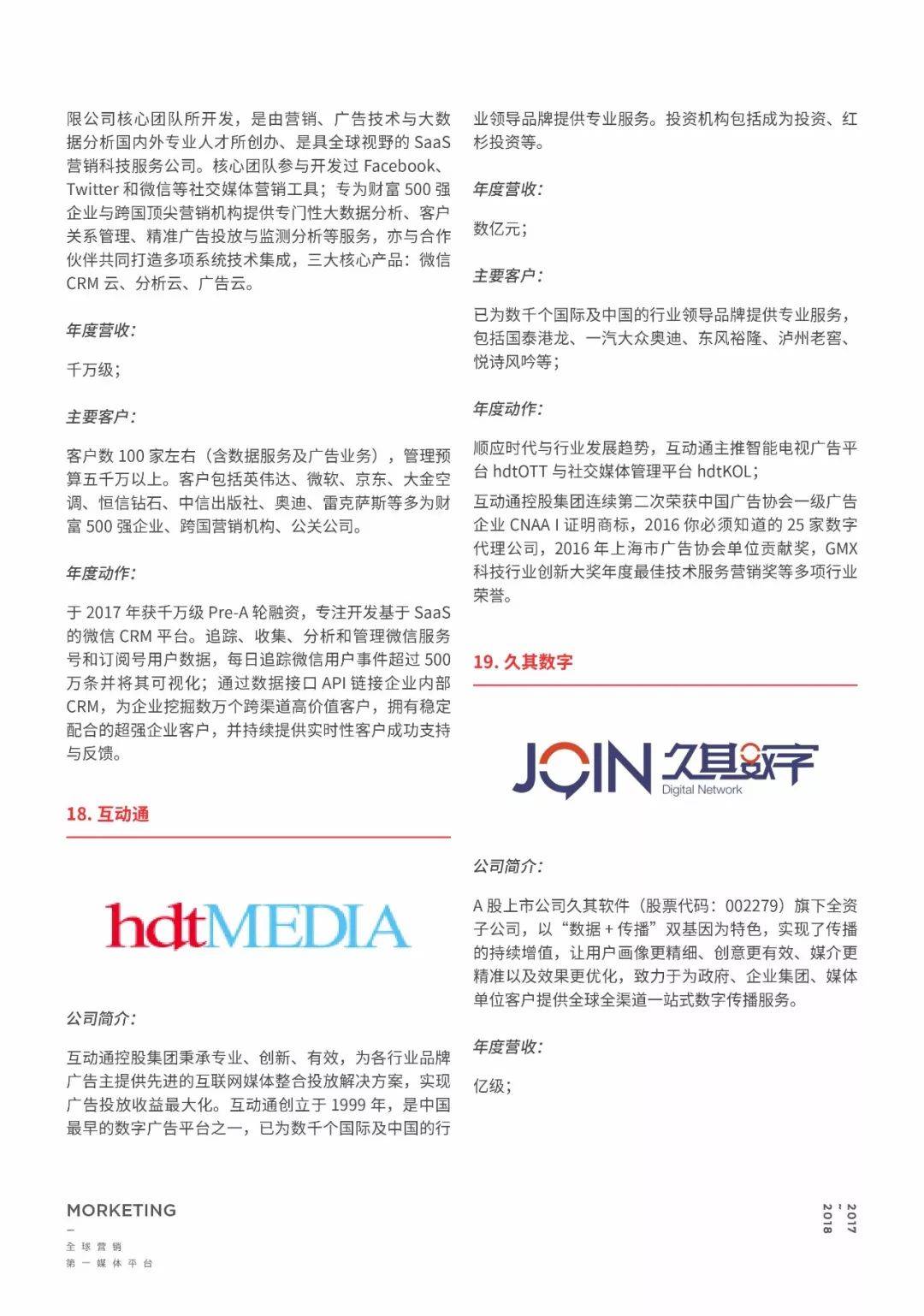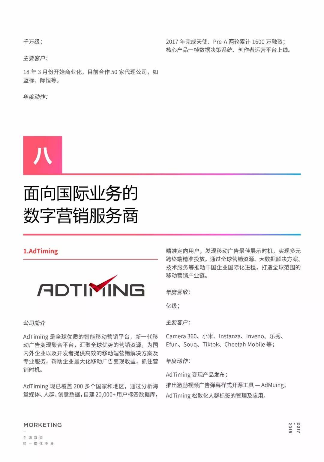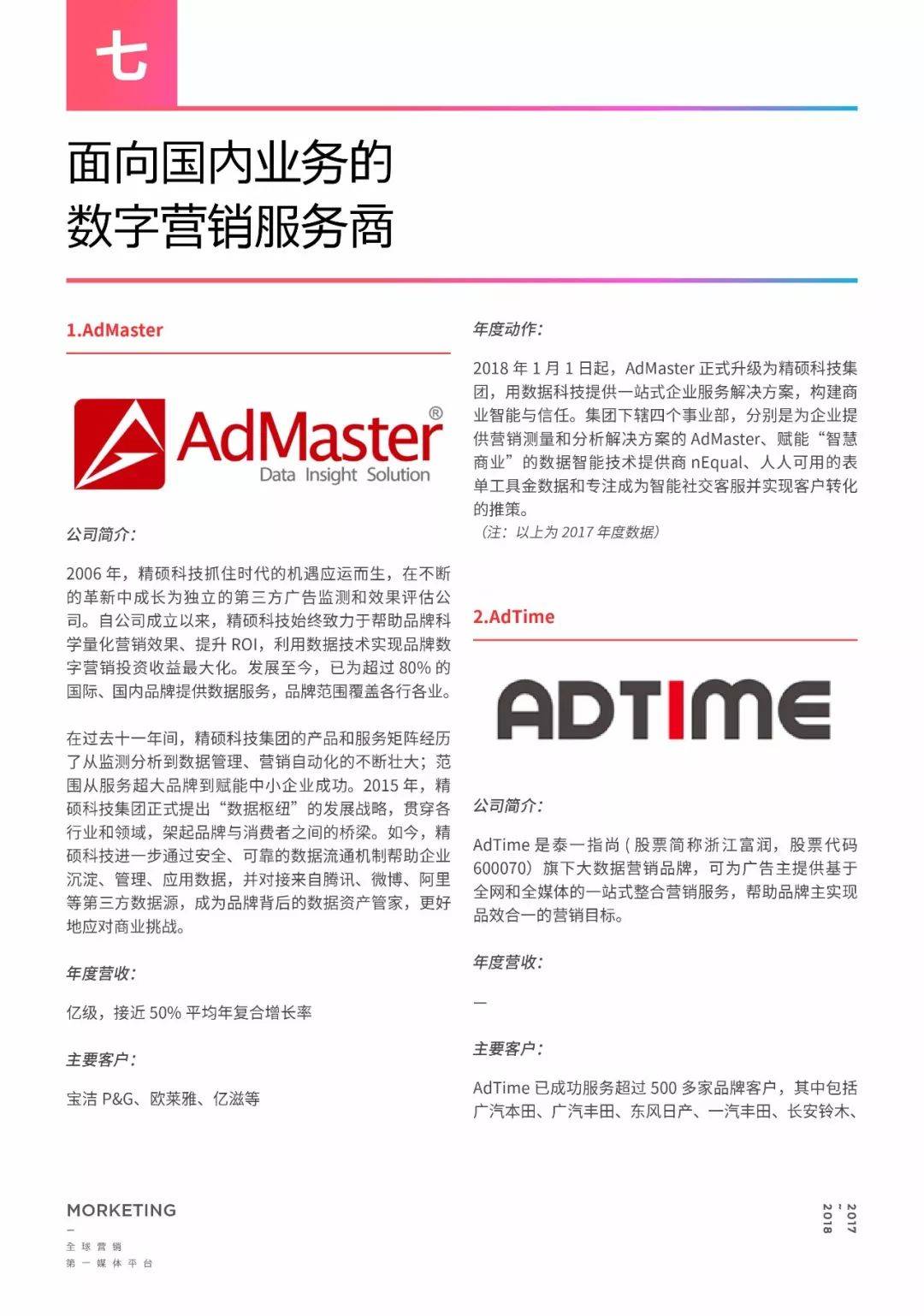 在数字营销机构手册的最后还给出了包括54家分别面向国内和国际业务的数字营销服务商信息供查阅。同时,第二期服务机构也正在征集中(微信后台留言参加征集)。