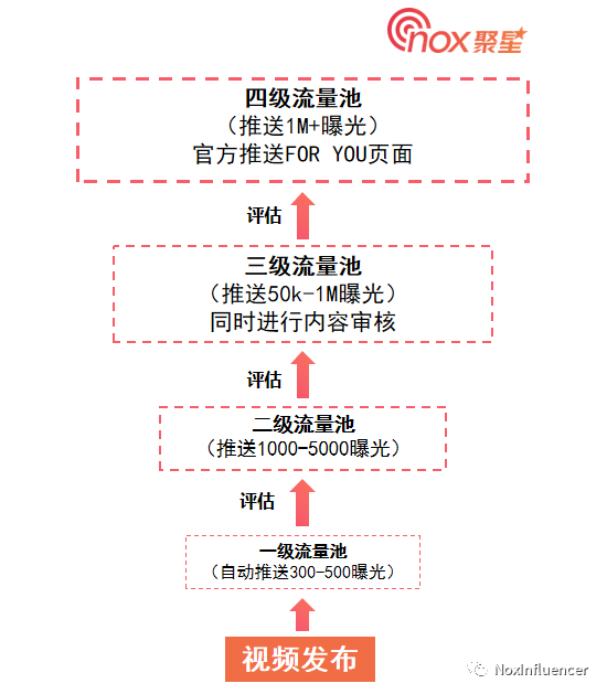 TikTok推荐算法遵循螺旋上升机制进行流量分发,不断使优质内容最大化曝光。所谓流量池,就是指基于不同播放量所分的不同的层级。