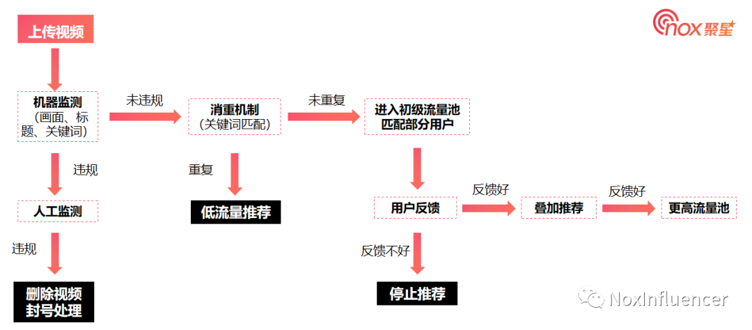 创作者上传作品之后,作品在TikTok内部经过一系列流程的筛选、匹配,最终分发给用户。