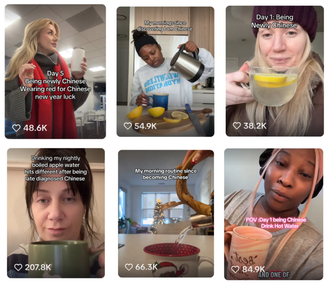 于是,那些原本习惯喝冰水、冬天穿短裤、回家光脚踩地板的外国网友,开始过上了另一种生活:每天喝热水、泡带着中医概念的养生茶,在家穿拖鞋、吃粥,学着做中餐,还有人干脆模仿起中国社交平台上的生活节奏,开始记录作息。