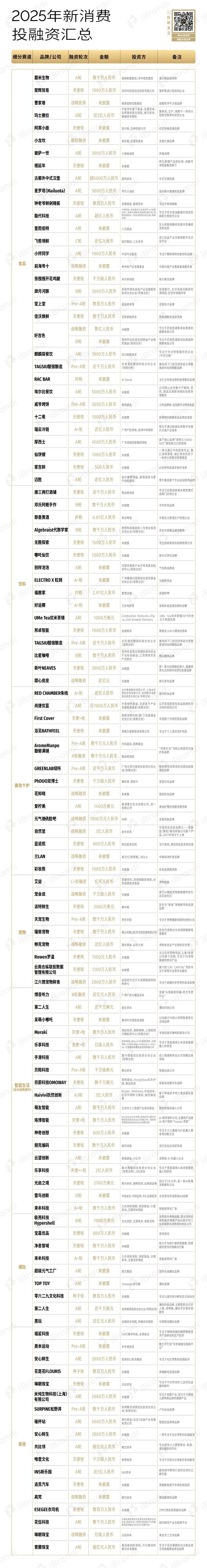 1、该融资数据由「iBrandi品创」不完全统计,由于新消费涉及面较广,故可能存在统计遗漏情况;