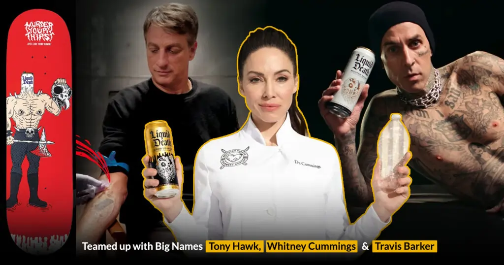 这个角色是怎么诞生的?不是会议室里开出来的,而是从Cessario自己的审美、摇滚文化、滑板亚文化、黑色幽默中长出来的。Liquid Death选择合作的“创作者”不是传统的KOL和网红,而是纹身师、涂鸦艺术家、音乐人、滑板手——这些在自己社区里拥有真正话语权的人。