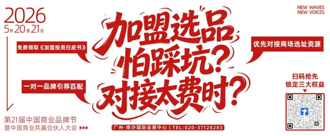 2026年5月20-21日,广州南沙国际会展中心,第21届中国商业品牌节暨中国商业共赢合伙人大会,期待与你一起把趋势看清,把资源找准,把合作谈成!