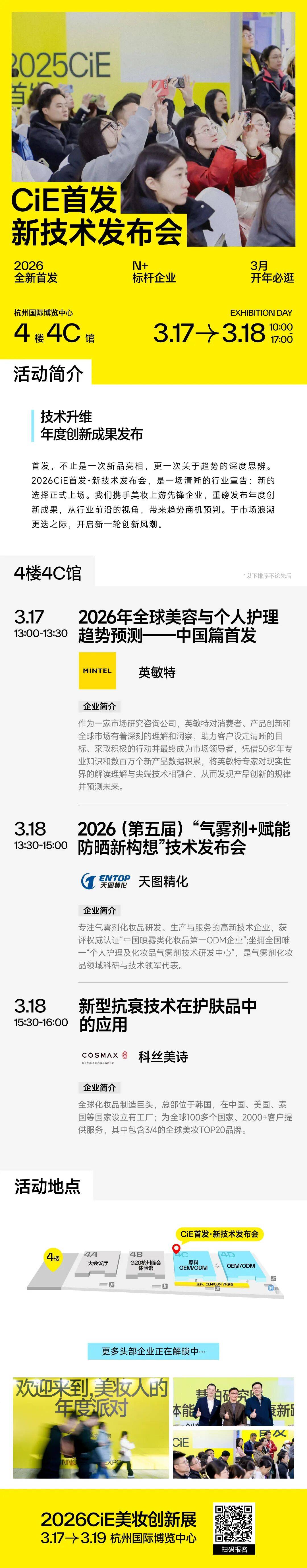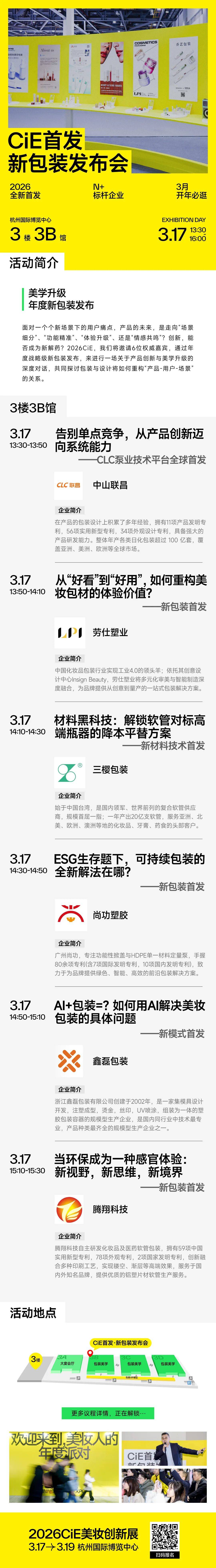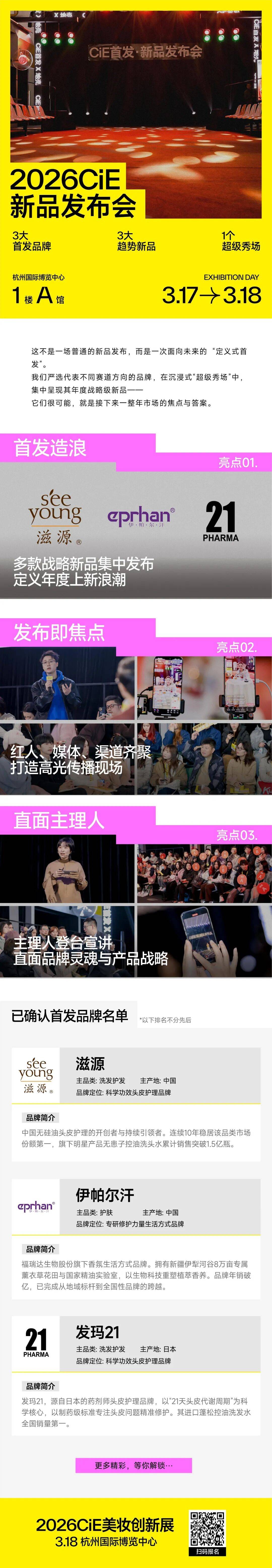 如今,首发已经成为行业趋势风向标和增长引擎。作为美妆新品首发首秀舞台,2026CiE精选优质展商,打造12场新品发布会,呈现年度创新趋势。
