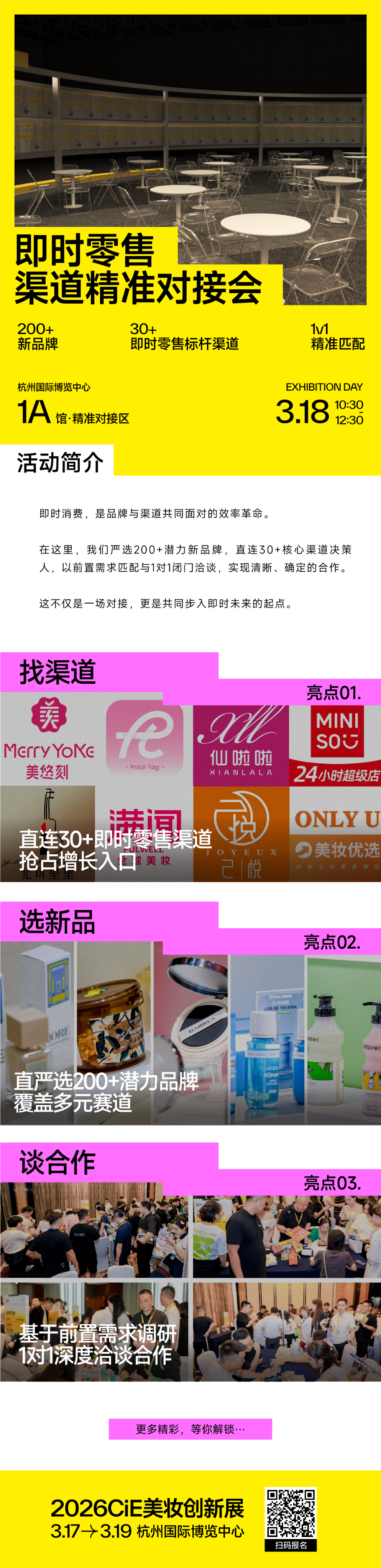 即时零售渠道精准对接会:即时消费,是品牌与渠道共同面对的效率革命。在这里,我们严选200+潜力新品牌,直连30+核心渠道决策人,以前置需求匹配与1对1闭门洽谈,实现清晰、确定的合作。