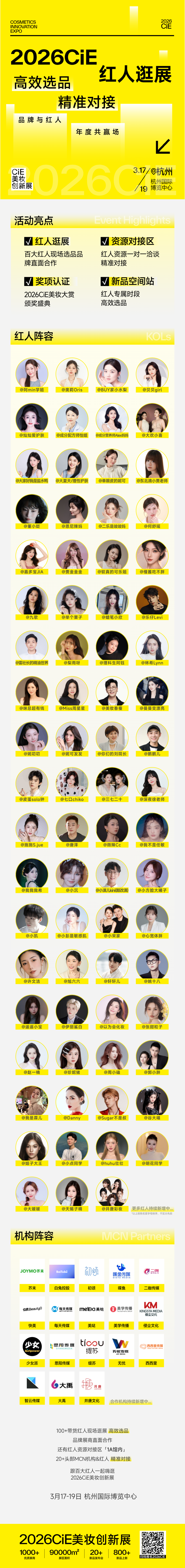 2026CiE现场,100+覆盖细分赛道的带货红人,组成「CiE专业选品团」,一众成分党、美妆博主、测评达人等将亲临展位选品,让对的品牌、对的产品、对的红人,在这里高效相遇,精准共赢。