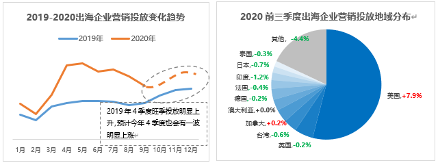 我们可以看到,尽管疫情对整个跨境电商物流环节造成了极大影响,但依然不能阻挡中国电商企业的出海热情,借着海外宅经济爆发的东风,将目光投向了更为成熟的美国市场。但我们也需要认识到,随着冬季来临,目前疫情随时有大规模二次爆发的可能,出海企业应时刻保持对各地封禁政策的关注;同时大量企业扎堆美国也将带来更大的竞争压力,美国市场本身已是存量市场,平台电商面临商品同质化、Amazon政策趋严等压力。新进入者可以发展独立站/开发特有品类,形成差异化竞争,或有利于更好的发展。此外,海外媒体政策日趋严格,出海企业在增加投放的同时要时刻注意合规红线,熟悉政策的同时有效利用媒体工具,提升营销投放效果。