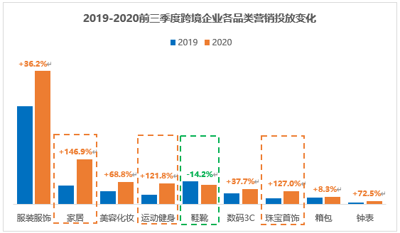 3)百花齐放:各品类投放普遍增长,仅鞋靴等产品有所下降。一季度投放短暂下跌后,大部分品类的投放在二、三季度出现明显反弹,家居、健身等宅经济相关品类投放增长超过100%,仅使用场景明显减少的鞋靴类商品有所下降。有趣的是,珠宝首饰等在疫情期间使用率本应不高的品类也出现了大幅度的增长,可能是因为精美、明亮的珠宝能够使消费者心情更加的愉悦,疫情期间一些定制类的珠宝产品深受消费者欢迎,这使得价格并不特别昂贵的在线珠宝品牌在疫情期间也有亮眼表现。电商购物季期间,珠宝首饰作为节日礼品或将继续会有较好的表现。