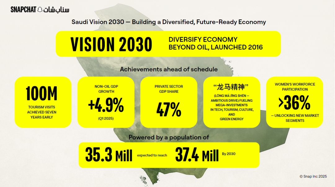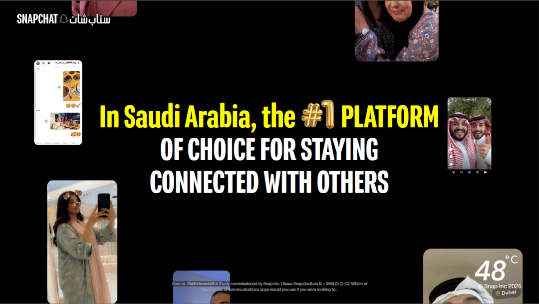 “沙特的年轻人平均每天打开 Snapchat 的次数超过 50 次。可以说,他们从清晨睁眼到深夜入眠期间,全天都在不停地刷 Snapchat。”Snap 沙特总经理 Abdulla Alhammadi 的打趣,道出了平台在沙特的核心地位:Snapchat 不只是年轻人的高频社交入口,更是中国品牌理解中东文化、建立情感连接的关键触点。可以说,在中东,如果你一天不刷 Snapchat,就仿佛错过了一场全城的 Majlis(聚会)。