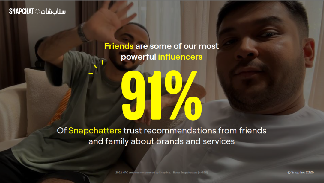 Snapchat 的研究显示,其 91% 的用户信任朋友和家人对品牌的推荐。这意味着,真正影响购买决策的,从来不是广告文案,而是“朋友说好”。