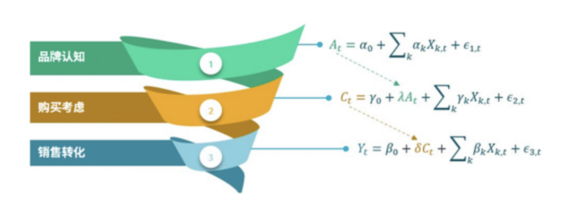 3.嵌套模型:让企业“观察更动态”,覆盖“认知-考虑-转化”等不同购买阶段的消费人群,从而借品牌媒介推动人群沉淀和转化。