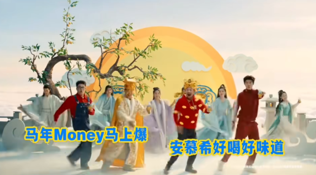 于是安慕希在这次马年广告里,找到了一个极其简单粗暴的答案——发财。
