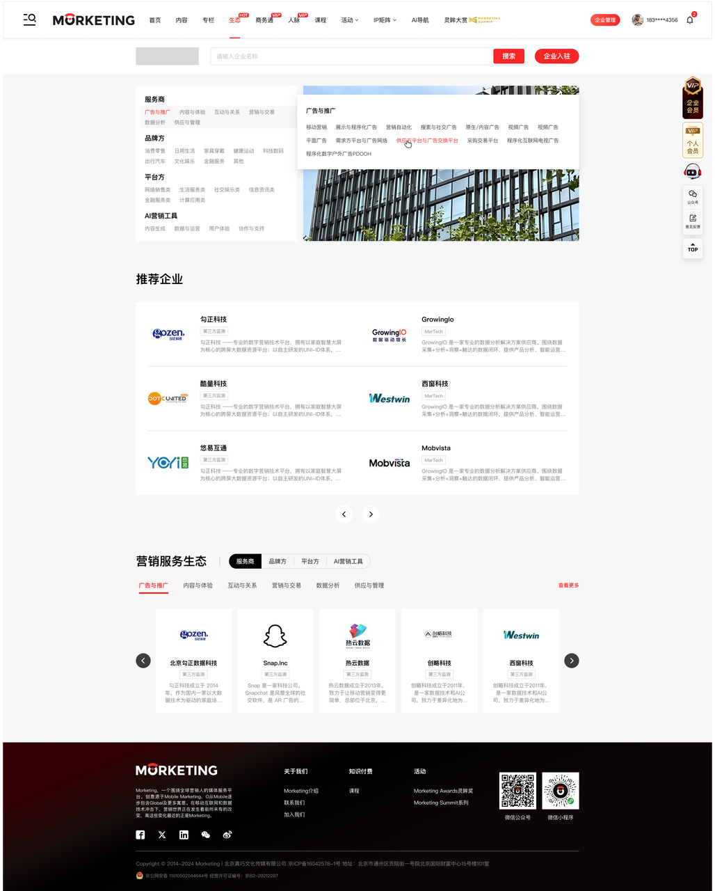 在这里,平台不再只是内容的发布者,而是将企业、服务商等分散资源进行系统化整合,形成一个可被搜索、筛选和持续沉淀的营销服务网络。