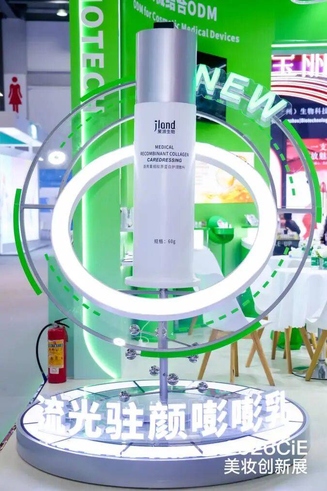 聚源生物在展会现场突出“妆械联合”理念,划分医疗器械、原料及妆品三大区域,主推自主研发的二类械字号乳液和I型胶原面膜,提供医美级守护,其控内毒系列主打医美级安全、疫苗级纯净,做到0防腐剂添加、即开即用。
